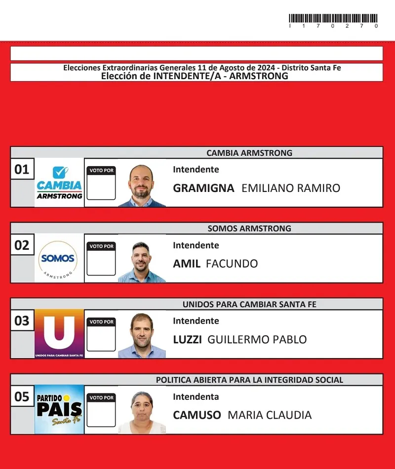 El próximo 11 de agosto, habrá elecciones en Armstrong, para elegir a quien completará el mandato en el Ejecutivo local hasta el 10 de diciembre de 2025, ante la renuncia del actual Senador Departamental Pablo Verdecchia.