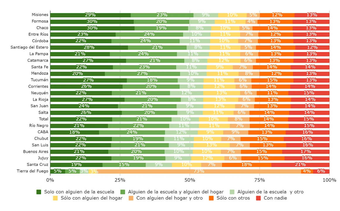 La mitad de los alumnos del último año de primaria (53,3%) de todo el país afirma que habla de temas de violencia y abuso domésticos con alguien de la escuela, mientras que el 15% asegura no compartir con nadie estos temas.