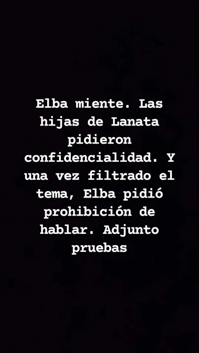 Sin embargo, esta versión fue rápidamente desmentida por Fernanda Iglesias, quien presentó evidencia en forma de documentos judiciales. En su publicación, Iglesias indicó: "Elba miente. Las hijas de Lanata pidieron confidencialidad. Y una vez filtrado el tema, Elba pidió prohibición de hablar. Adjunto pruebas". Iglesias compartió capturas del juzgado civil N°8 de Buenos Aires, las cuales revelan que fue Marcovecchio quien solicitó el bozal legal.