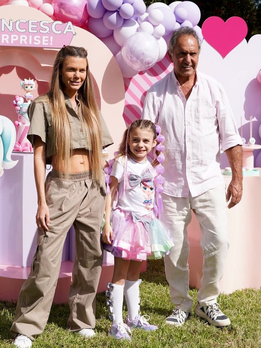Francesca Scioli Berger, la hija de Gisela Berger y el exgobernador y actual Secretario de Turismo, Ambiente y Deporte, Daniel Scioli, celebró su séptimo cumpleaños el pasado 23 de octubre en una fiesta al aire libre. La celebración, que tuvo lugar en la residencia familiar, se inspiró en las populares muñecas LOL Surprise, con una decoración colorida y vibrante que encantó a los pequeños asistentes.