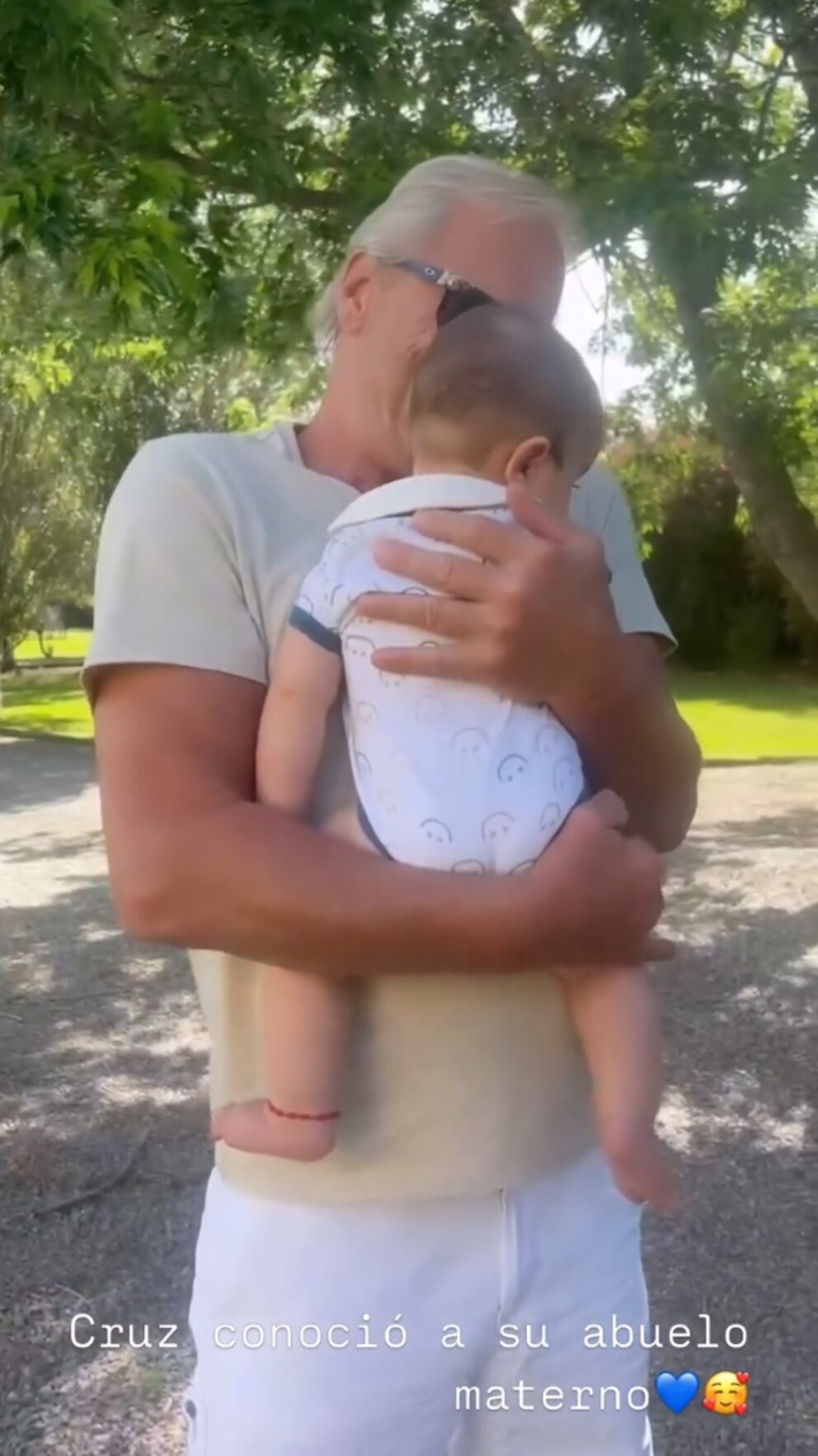 Las imágenes compartidas por Neumann en sus historias de Instagram mostraron la complicidad entre el abuelo y el pequeño. En uno de los videos, se observa a Cruz en los brazos de Unterüberbacher, quien lo mira con ternura, mientras el bebé explora sus piernas con curiosidad. Otra instantánea, adornada con un gran corazón, captura la risa del abuelo mientras balancea a Cruz, evocando una atmósfera de amor y alegría que resonó con sus seguidores.