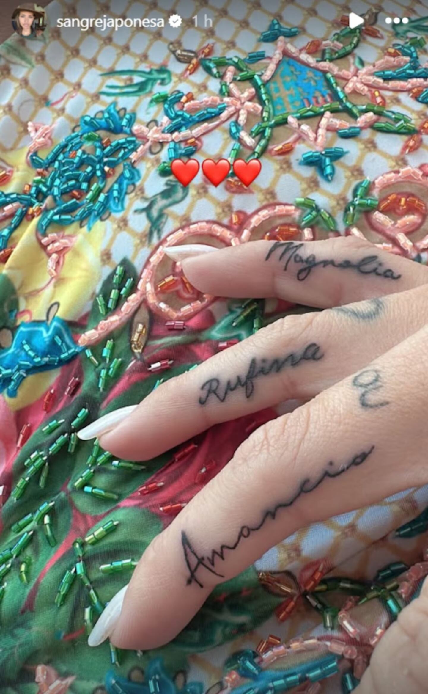 La China Suárez mostró recientemente en sus historias de Instagram un tatuaje que incluye los nombres de sus hijos, Rufina, Magnolia y Amancio, grabados en sus dedos. Aunque en un principio este diseño despertó especulaciones, la actriz aclaró en una publicación que simboliza "el amor que la une a lo más importante de su vida". Sin embargo, los rumores sobre una conexión directa con Icardi se confirmaron cuando él apareció con un nuevo tatuaje que también generó revuelo.