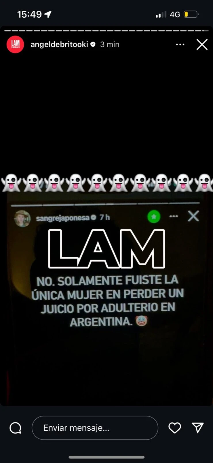En las imágenes filtradas, Suárez respondió con ironía a una reciente declaración de Pampita. Durante una entrevista con Barbie Simons, la modelo había afirmado: “No, yo no le robo el marido a nadie”, en un contexto que muchos interpretaron como una indirecta hacia la actriz. En respuesta, Suárez compartió una captura de la noticia junto a un texto mordaz: “No. Solamente fuiste la única mujer en perder un juicio por adulterio en Argentina”, acompañado de un emoji de payaso.