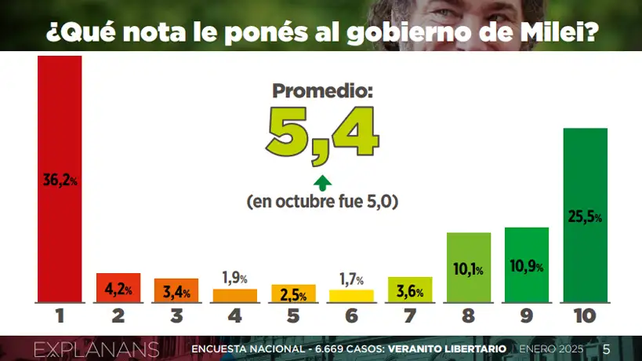Milei, calificado en una escala del 1 al 10