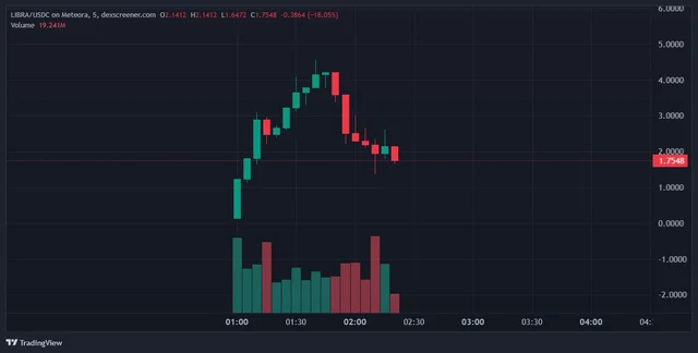 El presidente Javier Milei sorprendió hoy al recomendar en redes sociales un token denominado $LIBRA. Tras el anuncio, la criptomoneda experimentó un furor inicial, alcanzando un pico de 4,978 dólares, para luego desplomarse a 0,99159 dólares en pocas horas.