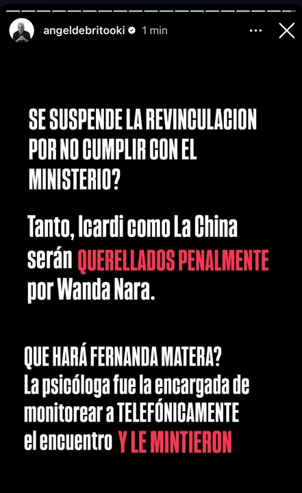 En otras publicaciones, el conductor añadió que "tanto Icardi como la China serán querellados penalmente por Wanda" y que "la psicóloga encargada de monitorear telefónicamente el encuentro" fue engañada.