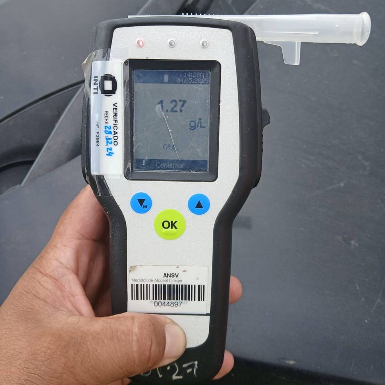 Ante esta situación, los agentes procedieron a detener el transporte en la banquina y, al constatar signos de posible intoxicación, se realizó un test de alcoholemia al chofer. El resultado arrojó 1,27 gramos de alcohol por litro de sangre, valor que excede ampliamente el límite permitido para conductores profesionales.