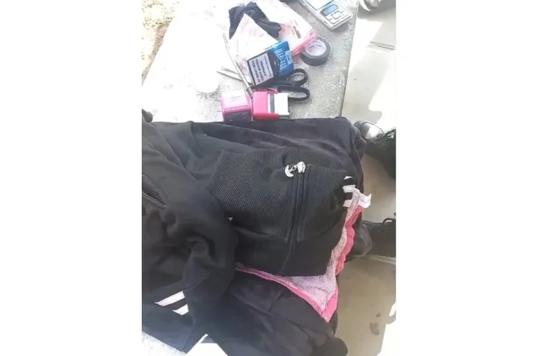 La mujer, que se negaba a ser requisada, finalmente entregó un bulto de color negro que llevaba oculto en su cuerpo y que contenía estupefacientes. Durante la revisión de sus pertenencias también se hallaron una balanza de precisión, un teléfono celular, una tijera y cinta aisladora negra.