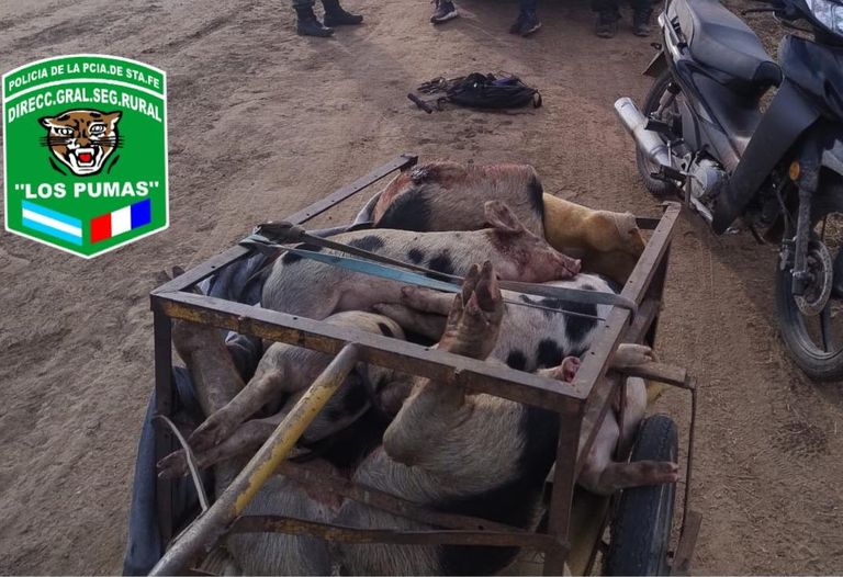 El operativo se llevó a cabo el pasado martes 3 de junio por agentes de la Sección N° 8 de la Guardia Rural “Los Pumas”, con sede en Venado Tuerto. Durante un patrullaje, los efectivos interceptaron tres motocicletas —una de ellas con un carro de un eje— en las que se transportaban siete porcinos faenados, entre ellos una chancha decapitada y seis lechones.