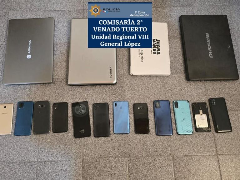 Durante el operativo, los efectivos lograron el secuestro de varios teléfonos celulares y notebooks, elementos que serán peritados en el marco de la investigación judicial.