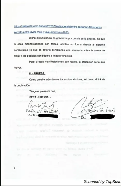 A tan solo horas del cierre de listas para las elecciones legislativas, un fuerte escándalo sacude a La Libertad Avanza en la provincia de Buenos Aires. Cristian León, excandidato a intendente de Mar Chiquita, y la concejal Patricia Heltner presentaron una denuncia penal en la Justicia contra Sebastián Pareja —responsable del armado provincial del espacio— y su segundo, el diputado bonaerense Alejandro Carrancio, por supuesta venta de candidaturas a dirigentes vinculados al kirchnerismo.