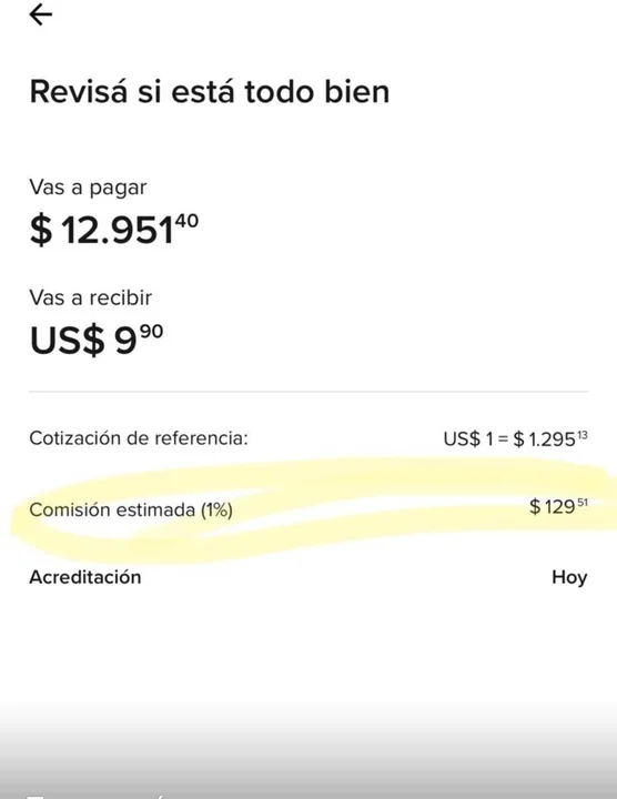 En las condiciones del servicio, la plataforma aclara este costo adicional, que también puede observarse de forma automática al simular o concretar una transacción dentro de la aplicación.