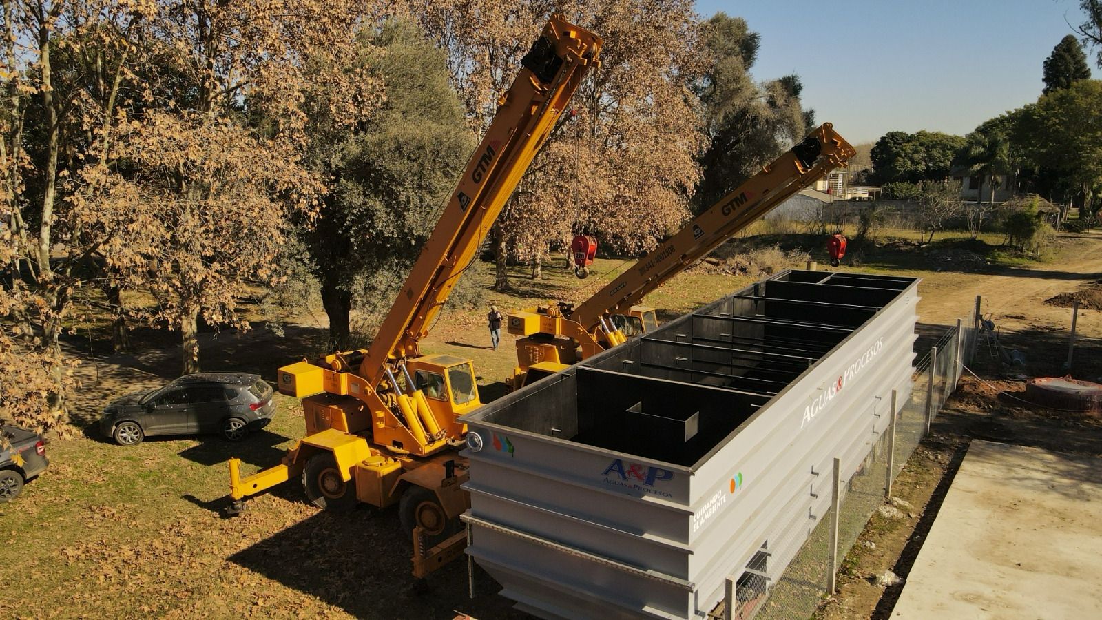 El secretario de Agua y Saneamiento, Leonel Marmiroli, informó que las tareas incluyen la base estructural, cerco perimetral y un colector cloacal de 500 metros para conectar la red de barrio Bouchard con la nueva planta. La inversión provincial asciende a más de $396 millones.