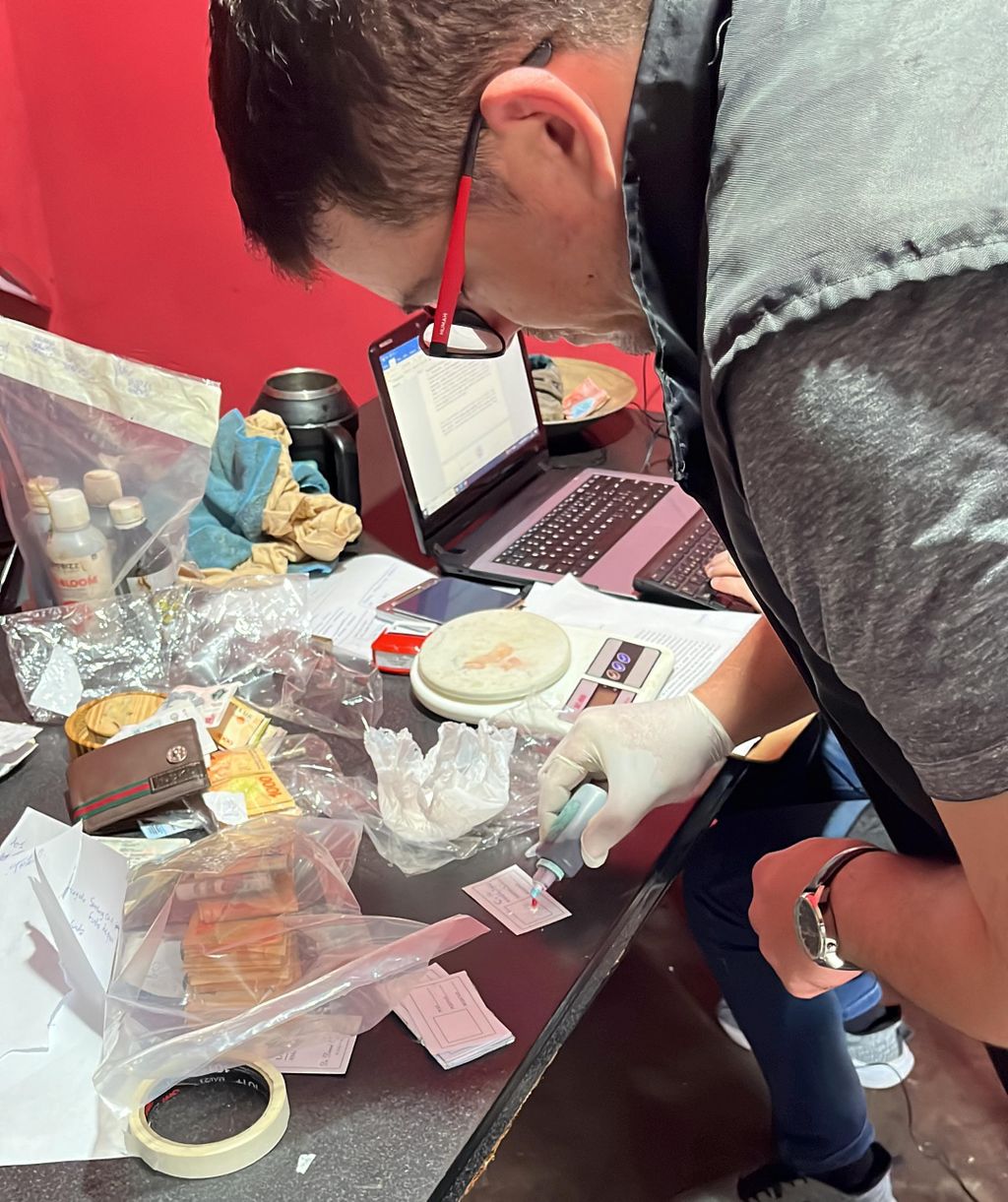 La investigación se inició a partir de una denuncia del intendente Leonel Chiarella. El 12 de agosto, en un allanamiento a una vivienda de calle Dimmer al 300, personal policial incautó 810.350 pesos, 61,4 gramos de cocaína, plantas de marihuana, una balanza de precisión con restos de cocaína, teléfonos celulares, fertilizantes, focos, municiones y elementos vinculados a la actividad ilícita. También se obtuvieron registros fílmicos de maniobras de venta./https://sur24cdn.eleco.com.ar/media/2025/08/reactivo_droga.jpg)