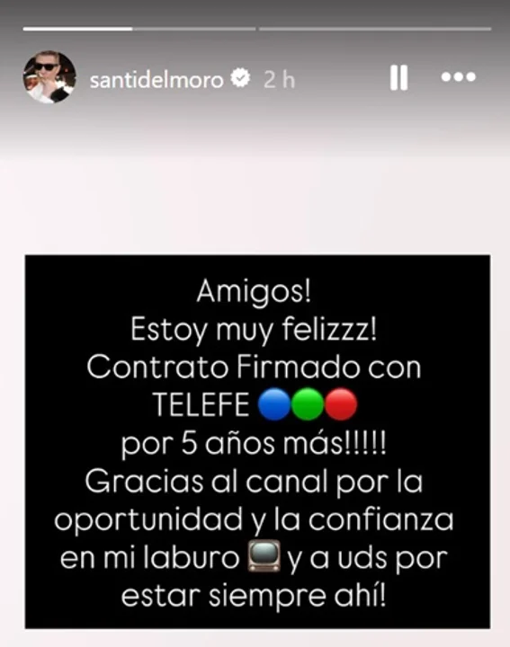 Santiago del Moro, una de las figuras más destacadas de la televisión argentina, anunció que firmó un nuevo contrato con Telefe por los próximos cinco años. La noticia llega tras semanas de incertidumbre por el cambio de dueños en la señal y la revisión de todos los contratos, incluso el suyo, considerado uno de los más importantes del canal.