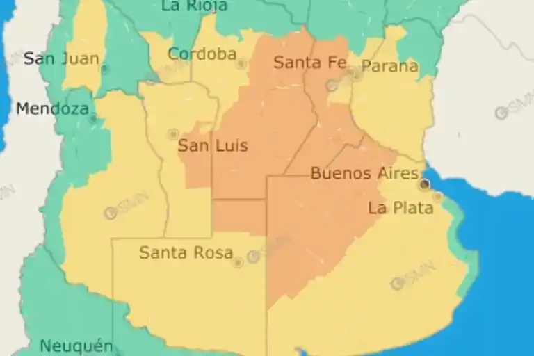 Según el SMN, las tormentas podrían desarrollarse durante la tarde y extenderse hasta la noche, con variaciones según la región. En la provincia de Buenos Aires se prevé que la inestabilidad aumente desde la tarde. En Santa Fe, el mayor riesgo se concentrará por la noche. Córdoba y Entre Ríos también podrían registrar tormentas fuertes durante la tarde-noche, mientras que en La Pampa se espera que las condiciones empeoren por la tarde. San Luis, La Rioja y Mendoza mantienen alertas por tormentas localmente severas.