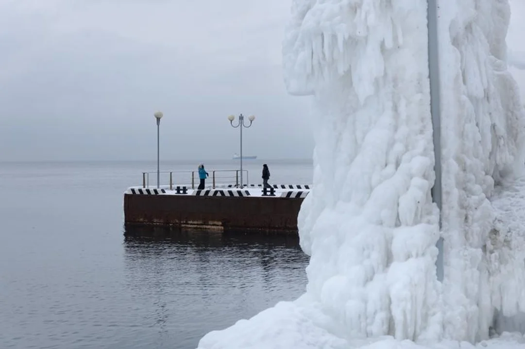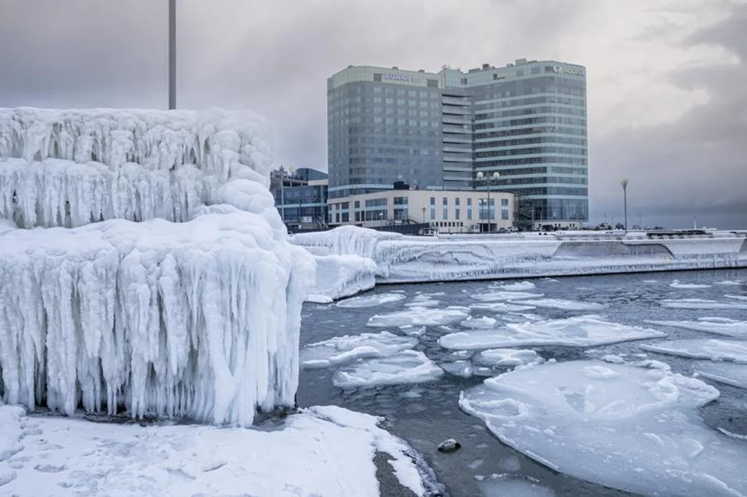 Las fotografías fueron tomadas en la ciudad portuaria de Vladivostok, ubicada en el extremo oriental de Rusia, donde la combinación de bajas temperaturas y humedad marina generó formaciones de carámbanos y verdaderas cascadas de hielo sobre estructuras urbanas.